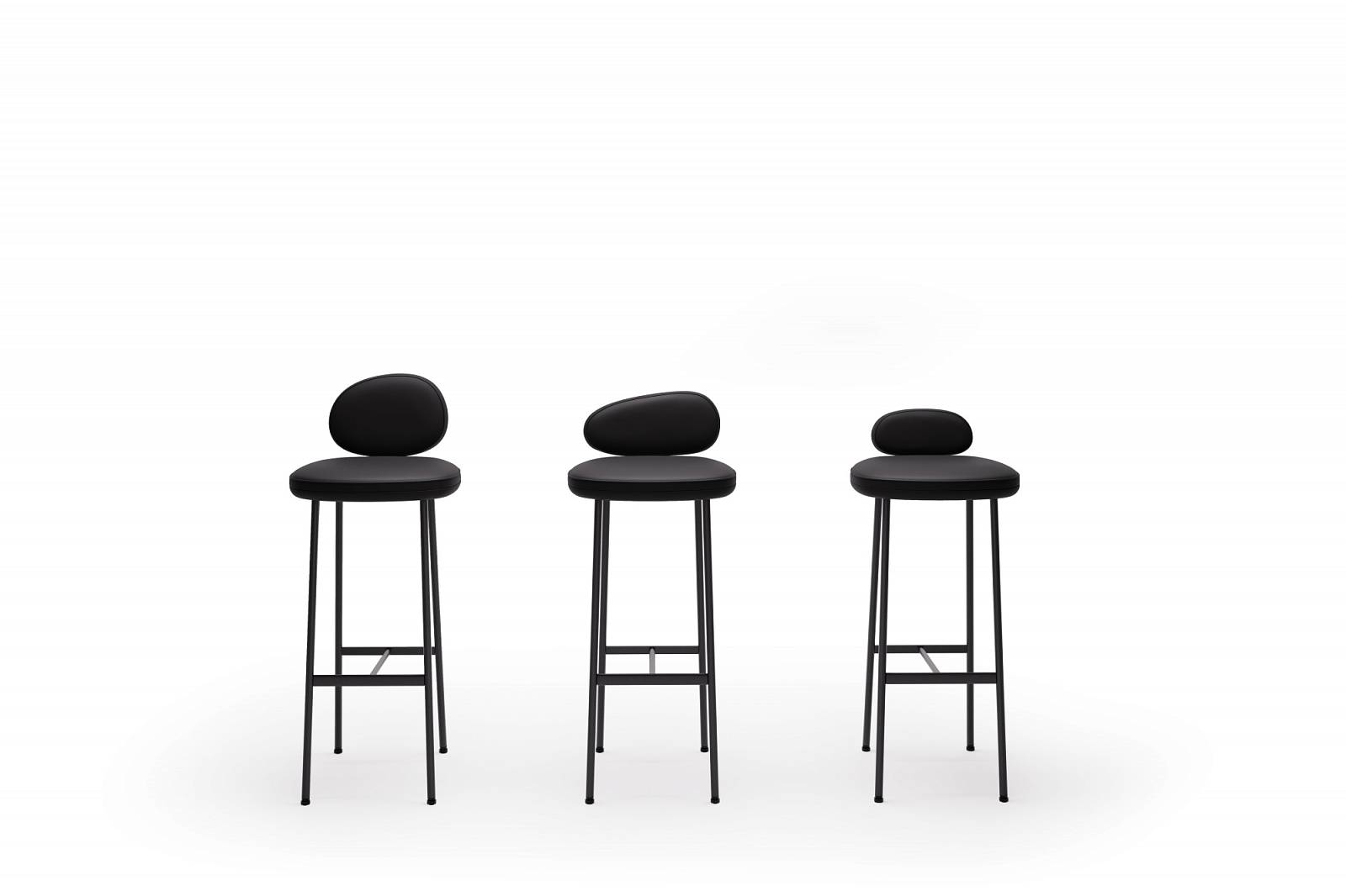 Барные стулья, приподнятые на тонких, стройных ножках, словно тростинки, которые изящно поддерживают органичные формы, напоминающие озёрную гальку. Три высоты и три ширины — ведь каждый камешек уникален по-своему.