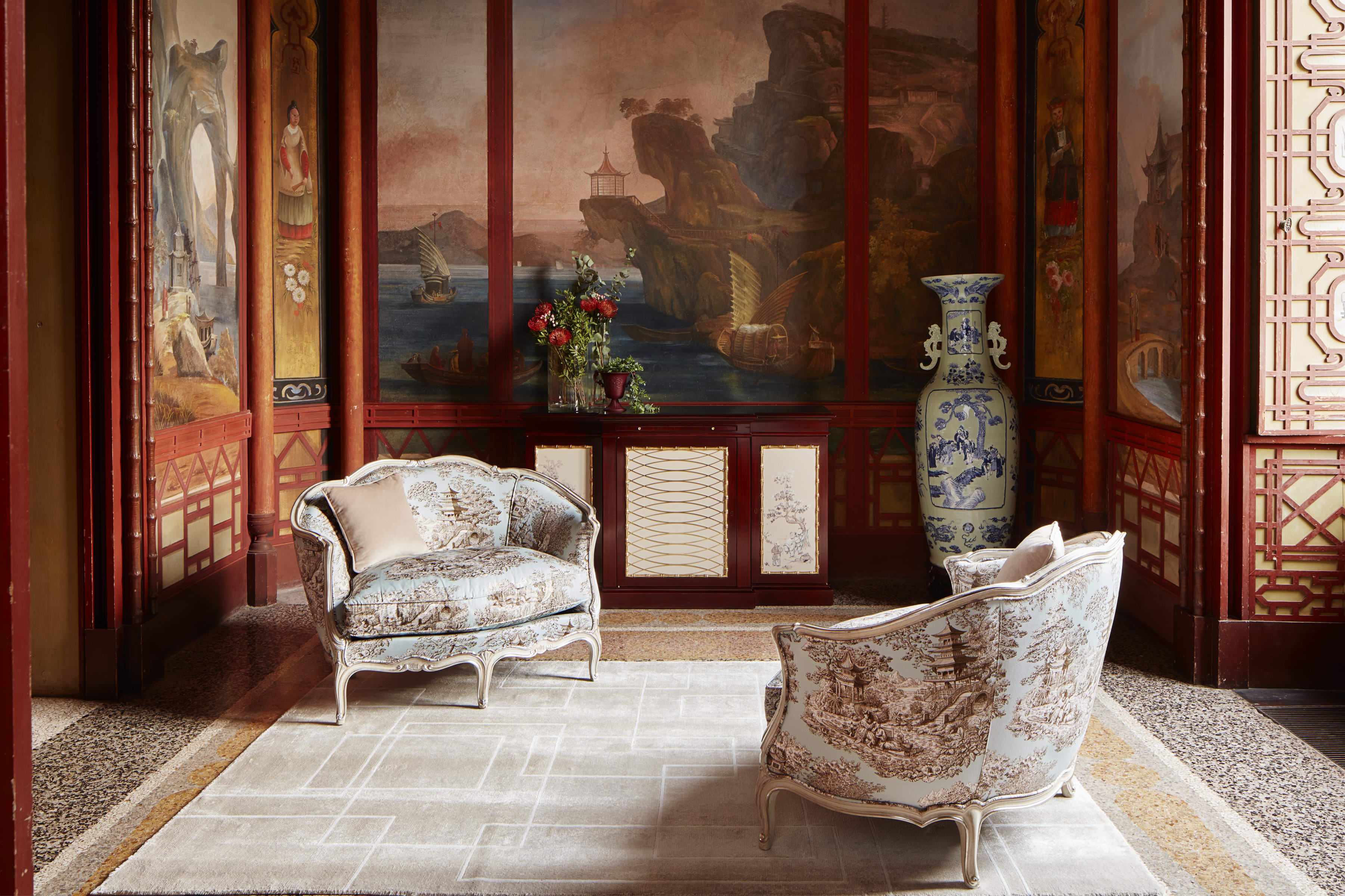 Маркиза Людовик XV в обивке. ОТДЕЛКА 77+intagli argento (C*) ТКАНЬ COL-M4076-5 (CAT.A)