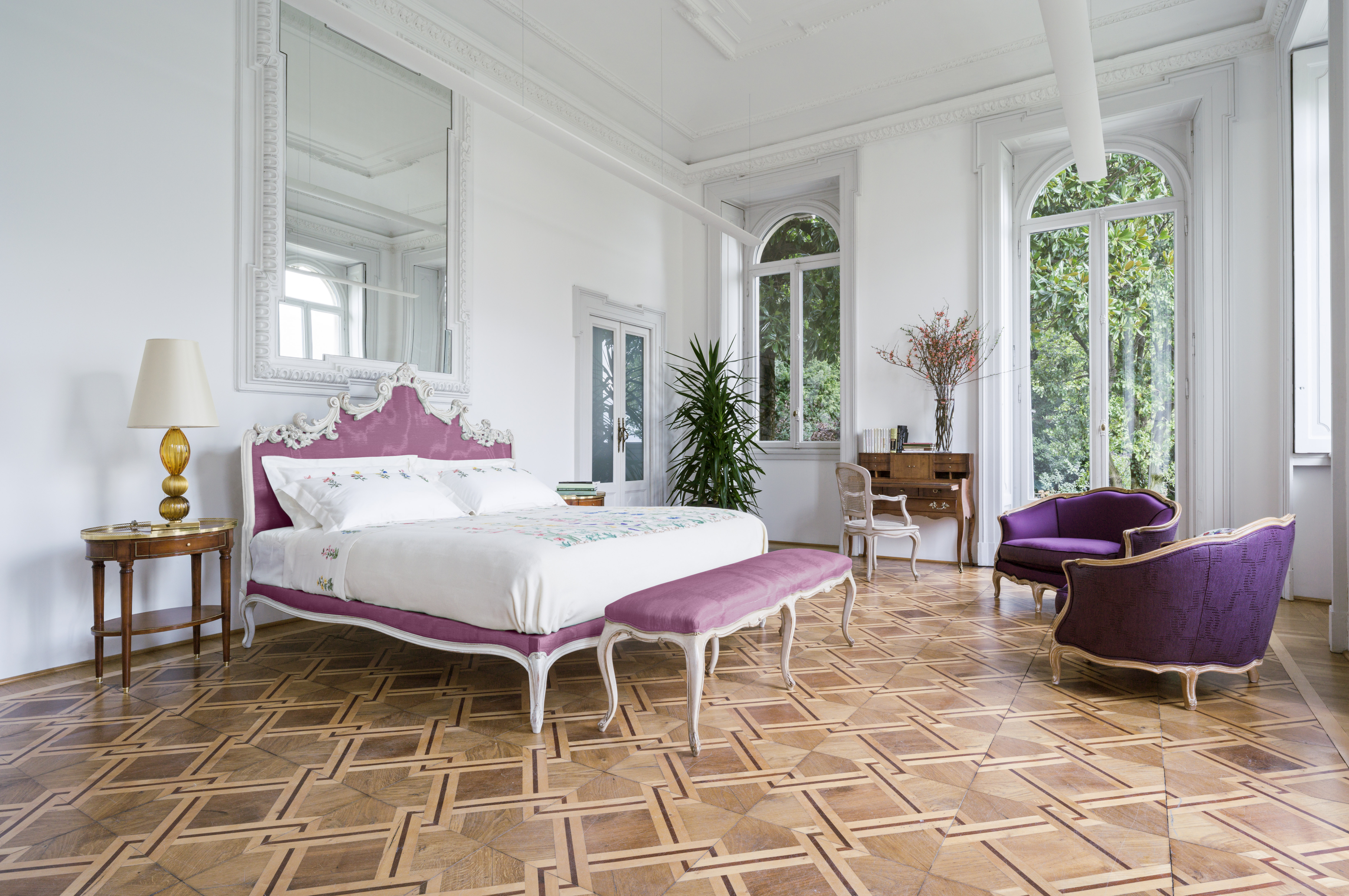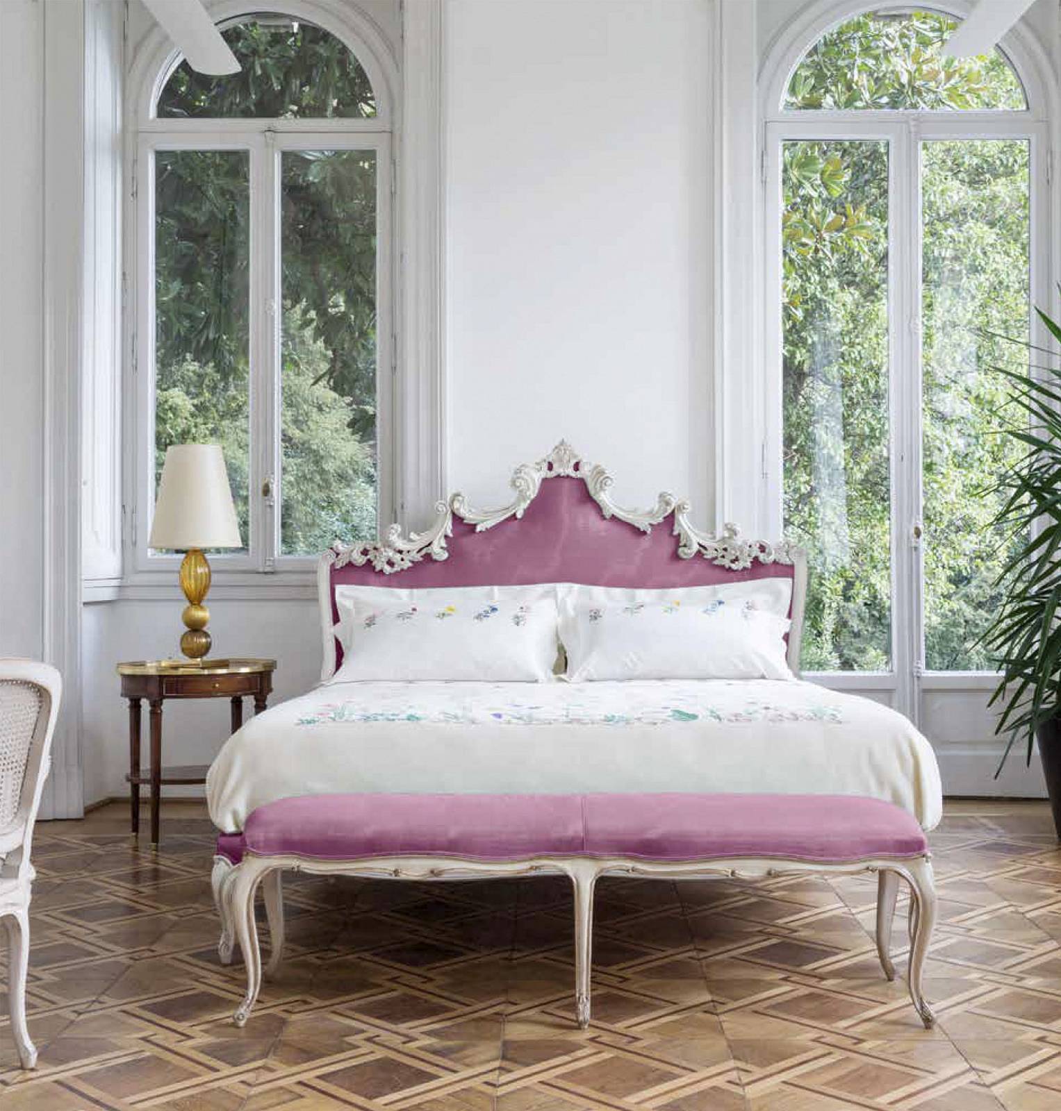 Кровать Людовик XV, изголовье и каркас обиты тканью. ОТДЕЛКА 72 ©, ткань PF-F2230-227 (КАТ.B),