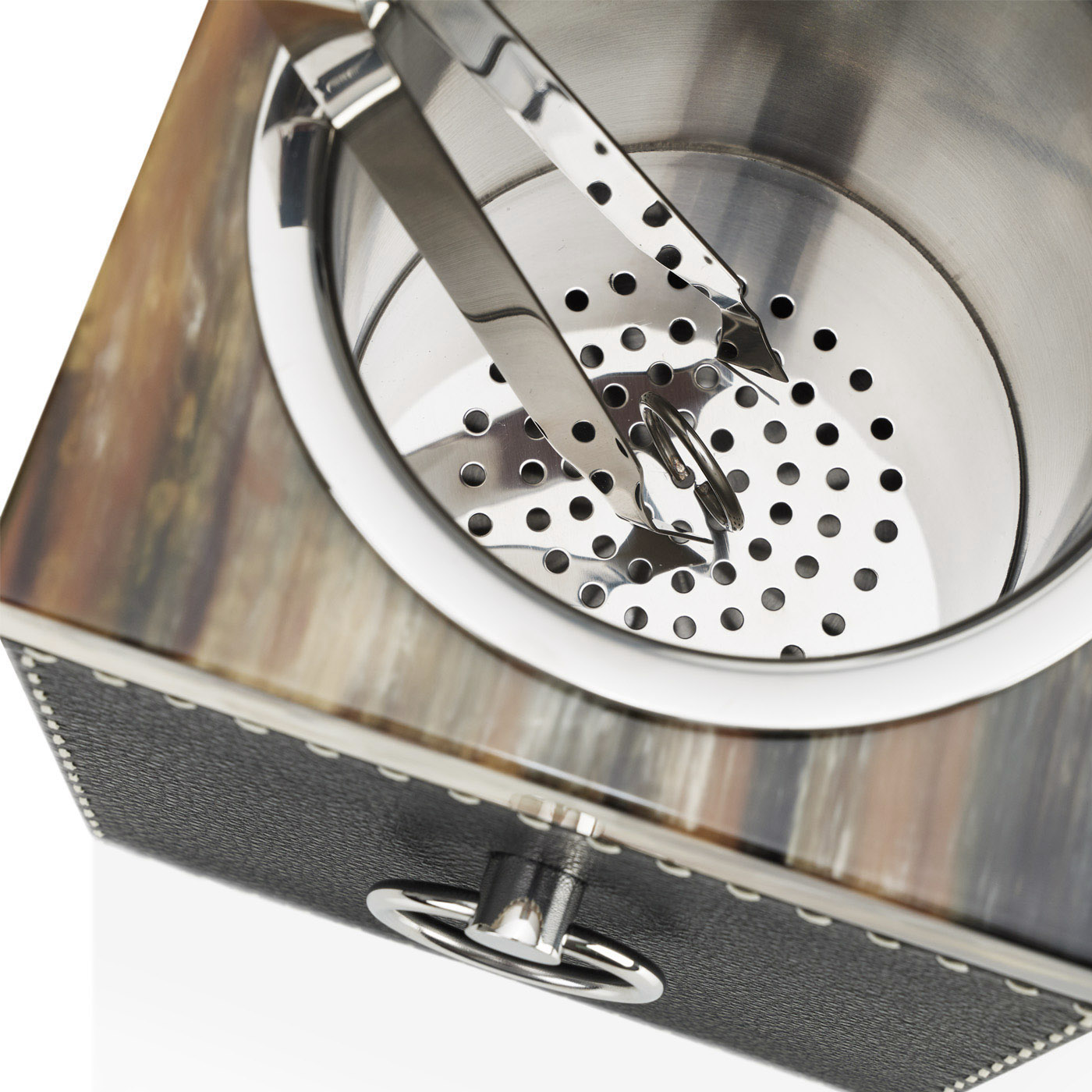 Элегантное дополнение к любому домашнему бару, ведёрко для льда Nives — незаменимый аксессуар для тех, кто предпочитает напитки «он зе рокс». Его дизайн отличается изысканным кантом из натурального рога и ручной седельной прострочкой, проходящей по боковым сторонам.