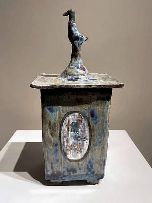 Ваза керамическая с крышкой. Уточки. Авторская роспись. Алиса Маслова