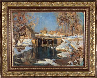 Лапшин Г.А. Зимний пейзаж. Запруда на реке