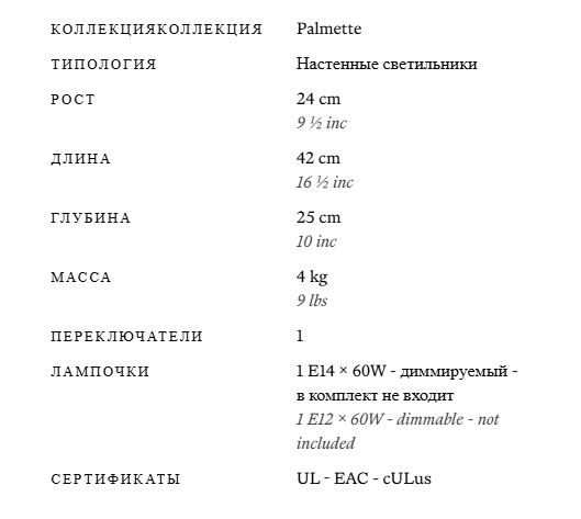 Бра Palmette
