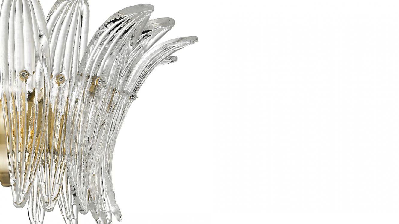 Бра Palmette — это ручная работа высочайшего уровня. Изделие рождается из стилистических изысканий, где исторические мотивы интерпретируются через призму современности. Веера хрустальных листьев предлагают свежий, завораживающий взгляд на ар-деко.