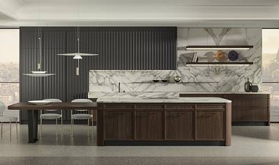 Материал: Дуб в отделке с открытыми порами. Столешница мрамор.