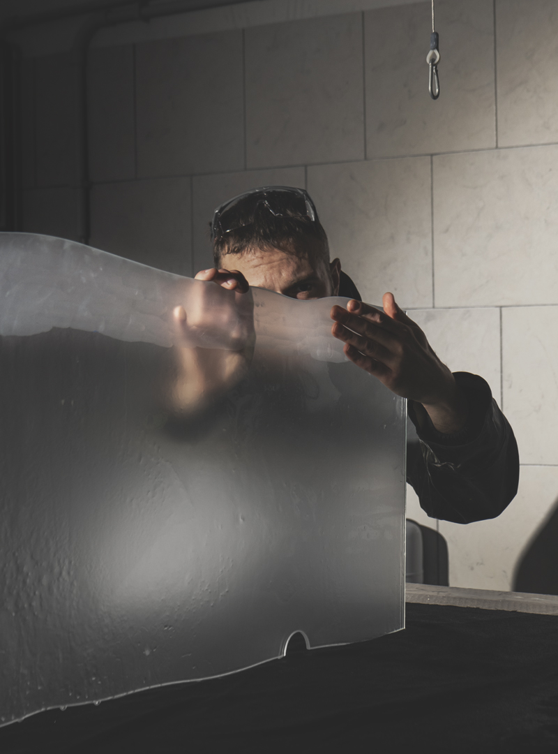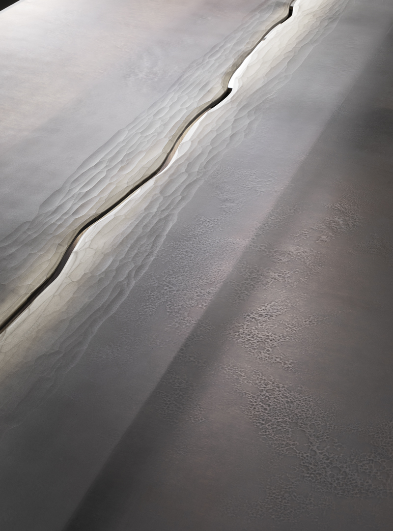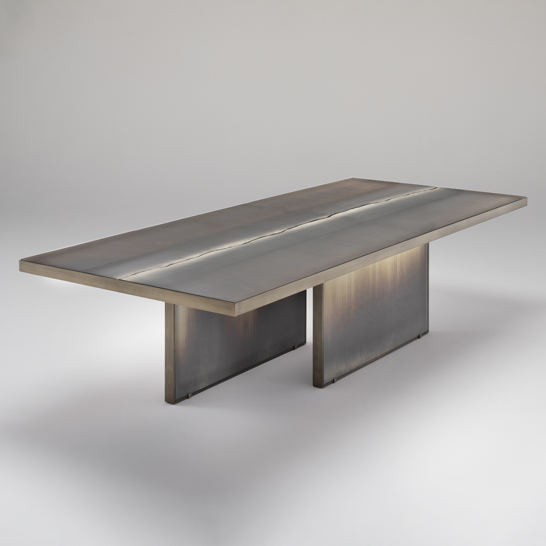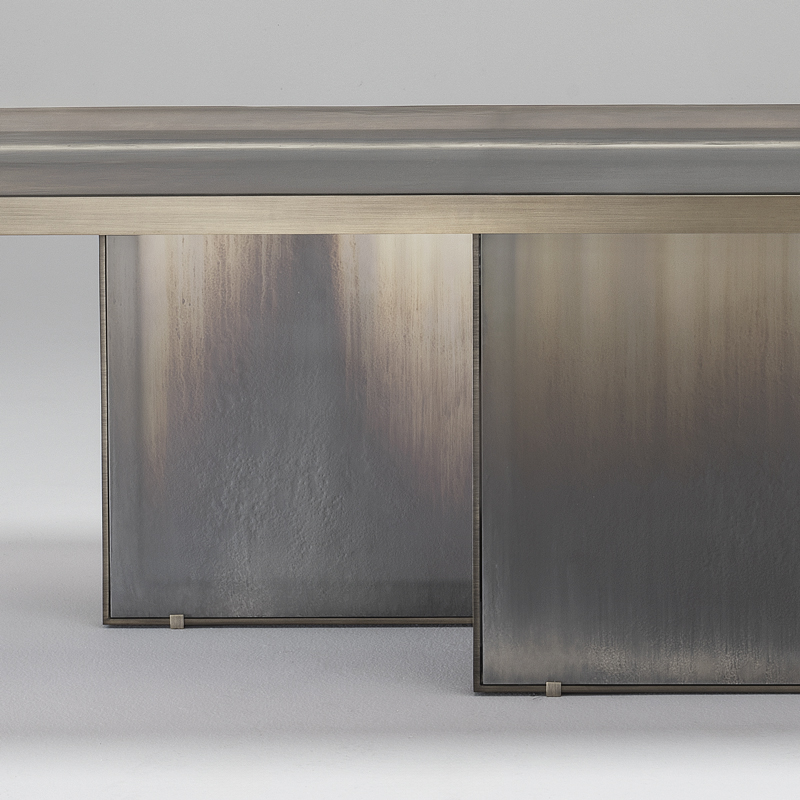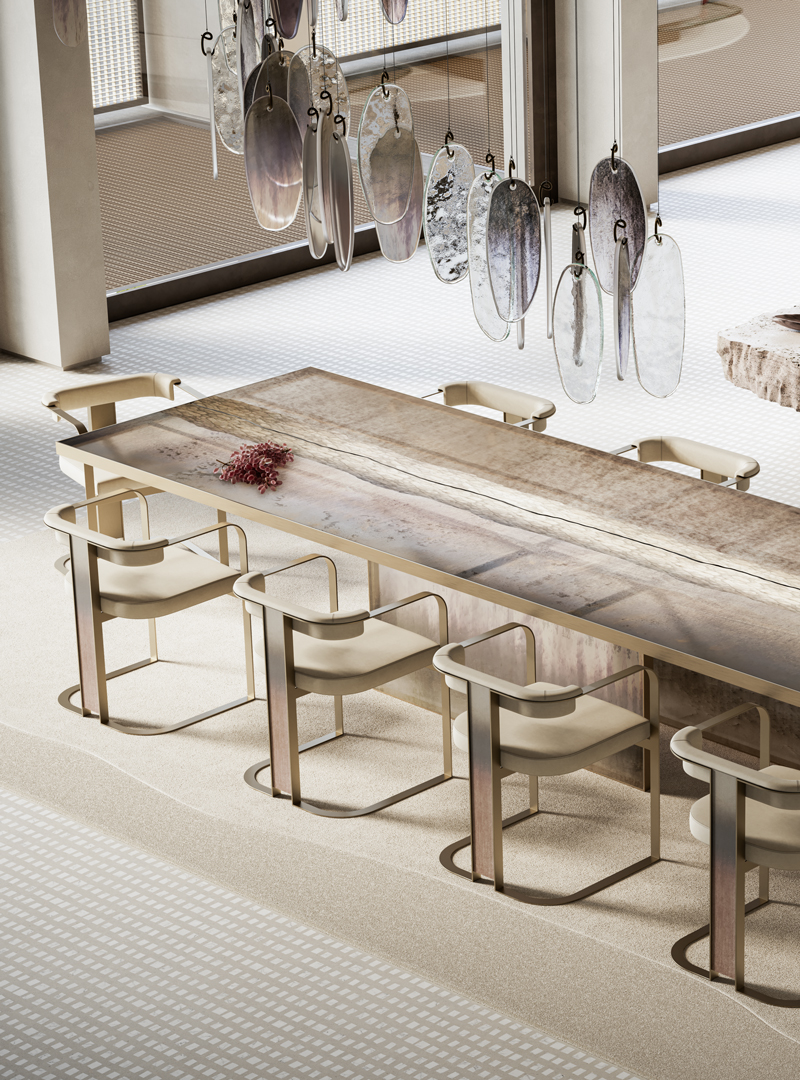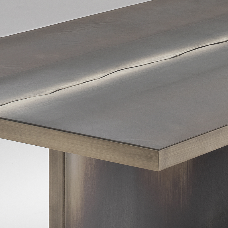 Столешница из стекла толщиной 10 мм, разделенная на две части, с декором Roddi