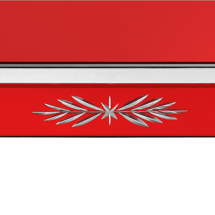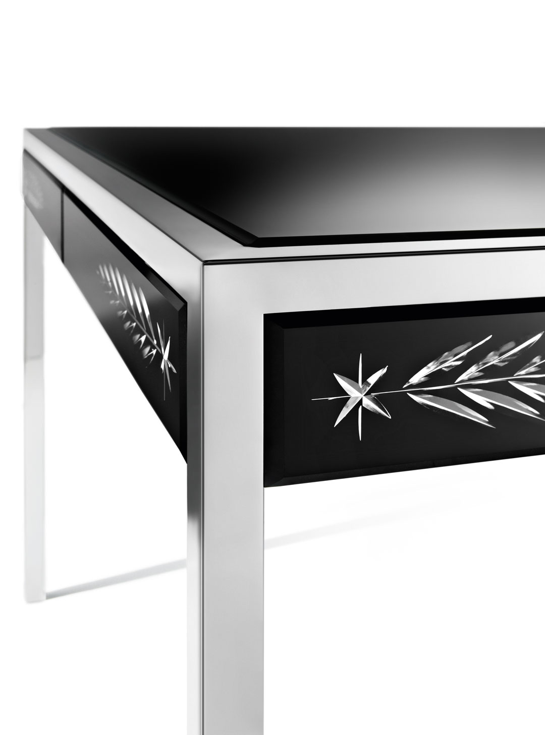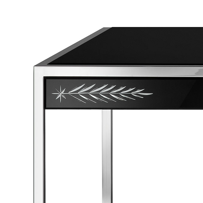 Каркас выполнен из дерева с покрытием матовым черным лаком, на него установлены зеркальные пластины с гравировкой, выполненной вручную.