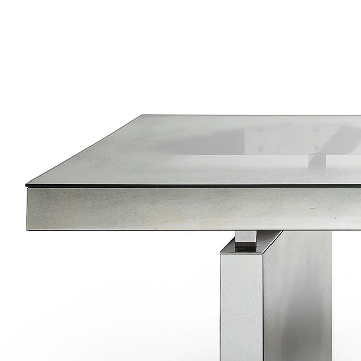 Стеклянный стол с декором Lagune - по краям столешница и основания выполнены в отделке состаренное зеркало, а посередине - прозрачное стекло.