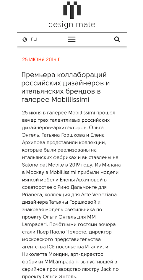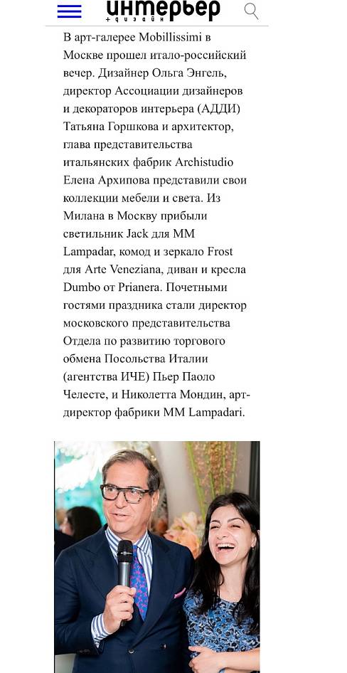 Design Mate Светская хроника / Премьера российских дизайнеров в Mobillissimi