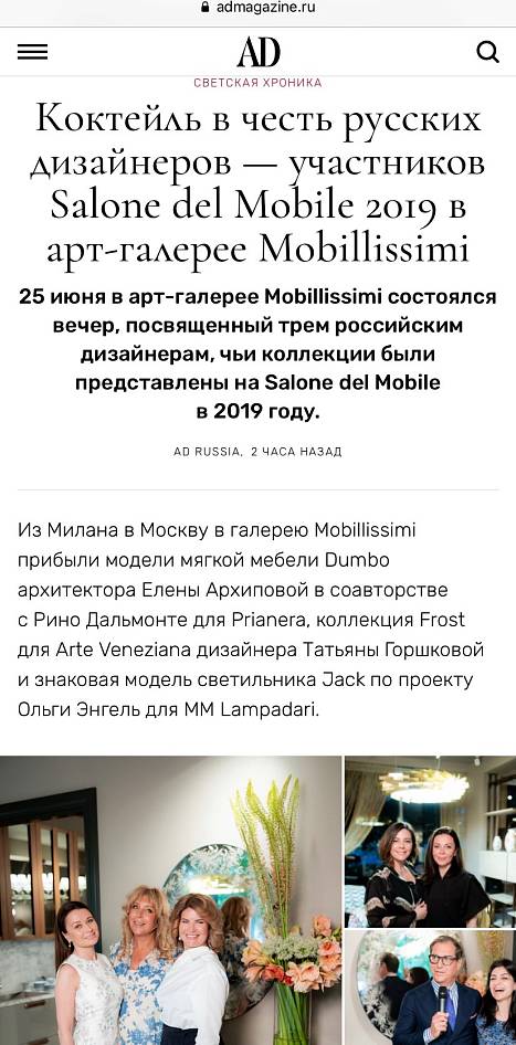 AD Magazine.ru / Коктейль в честь русских дизайнеров в Mobillissimi